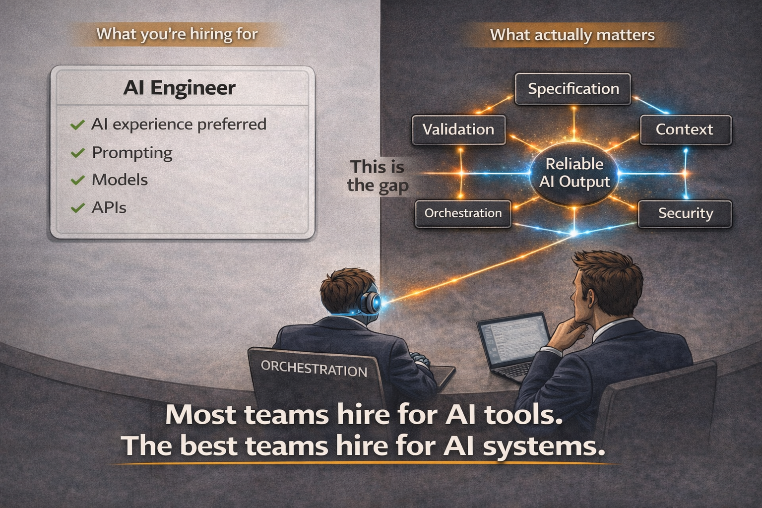 Most teams think they're hiring for AI. They're not. The scarcest capability in engineering right now is not prompt writing, model tuning, or tool familiarity. It is the ability to design systems that make AI output reliable.
