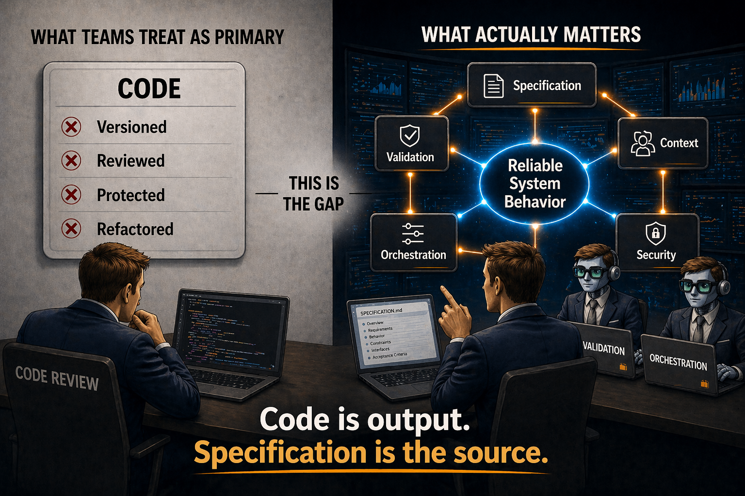 In engineered AI systems, the specification is the primary artifact. Code is generated output. A derivative, not the source of truth.